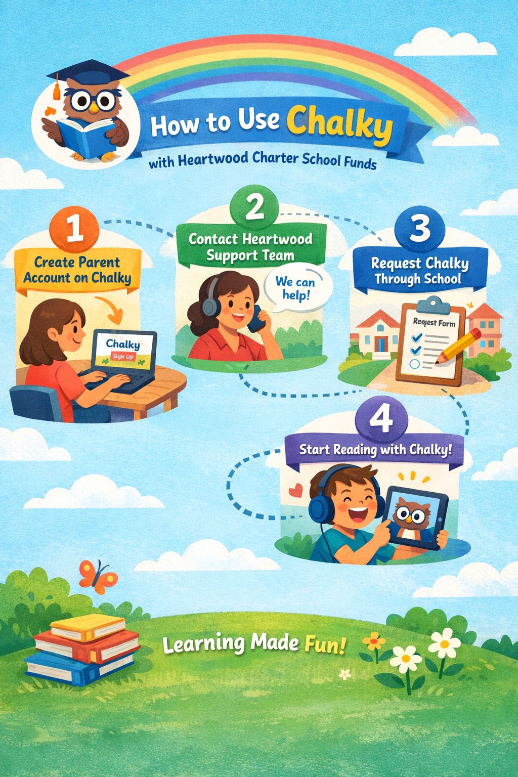 Reading comprehension is one of the most important skills children develop throughout their educational journey. Heartwood instructional funds may be used for approved educational materials and services that support student learning, including reading-related tools when they meet program guidelines and vendor requirements. Chalky supports reading comprehension and vocabulary through structured reading sessions and parent insights.